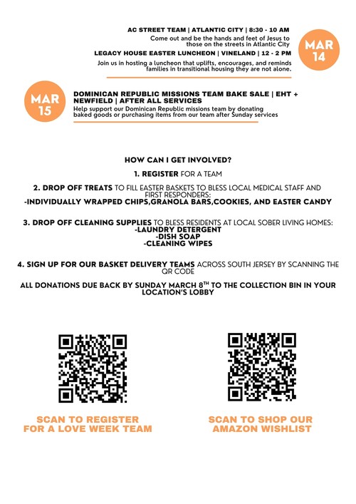 EASTER LOVE WEEK OUTREACHES AND SERVING OPPORTUNITIES
