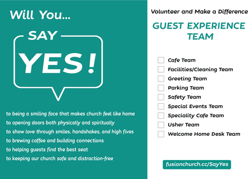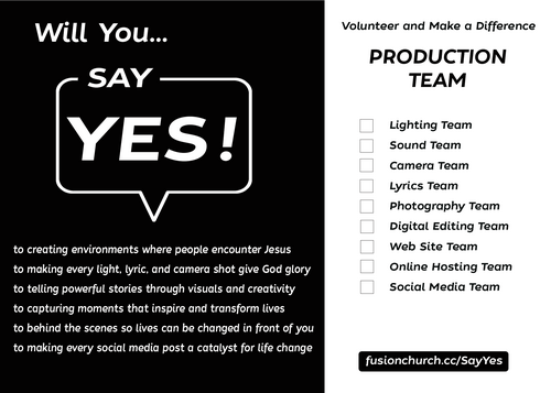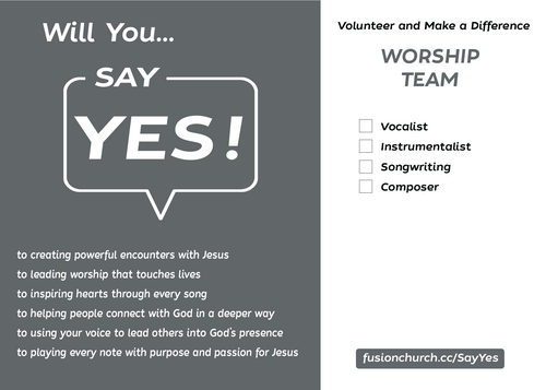 God has given you unique gifts, and there’s a place for you to use them! When you say YES to serving, you become part of something bigger—helping people experience Jesus in a real and life-changing way. Whether it’s greeting guests, leading worship, praying with others, mentoring the next generation, working behind the scenes, or serving in another way, your YES makes a difference. With teams in Guest Experience, Worship, Production, Kids, Youth, Prayer, Safety, Creative, and more, there’s a place for you to serve and make an impact. Find your team and step into your calling today!